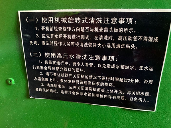 8、正常情況下,清洗機的工作壓力在出廠時已調(diào)定,請不要自行調(diào)節(jié)。