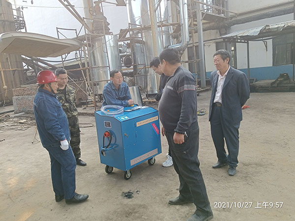 2021年10月27日中午:河南省周口市沈丘縣周營鄉(xiāng)孔大橋東沈丘禾源糠醛有限公司范總和生產(chǎn)廠長馬家全的精心安排,現(xiàn)場研究,與我們河南都市機械設備有限公司田主任,竇經(jīng)理,都紅植技術員溝通討論,發(fā)明了一款加粗直徑25毫米長度達到22米加長600型智能清洗機軟軸,解決了不用爬高15米的三層樓頂,直接在地平面就可以操作的新型設備,解決了每次吊起來再卸下來找人難,找吊車難的問題,還節(jié)省每次的費用2000元,既省費用又省時間,為糠醛行業(yè)的生產(chǎn)提高了效率!