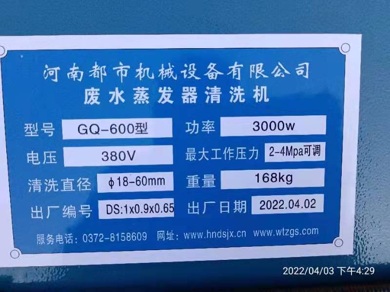 2022年4月1日,衡水酷祥生物科技有限公司糠醛廠(原河北省衡水誠碩化工有限公司),在王總的精心安排下,韓總,張主任,全廠職工共同努力配合河南都市機械設備有限公司喬主任,發(fā)明了一項新的工具,使用兩臺GQ—600型智能清洗機鉆洗管子內(nèi)徑40毫米長度5米1800根結(jié)垢堅硬,徹底堵死,好久沒有通透過的1000平方廢水蒸發(fā)器,為糠醛行業(yè)開辟了新的道路。歡迎大家關注分享指導合作共贏!