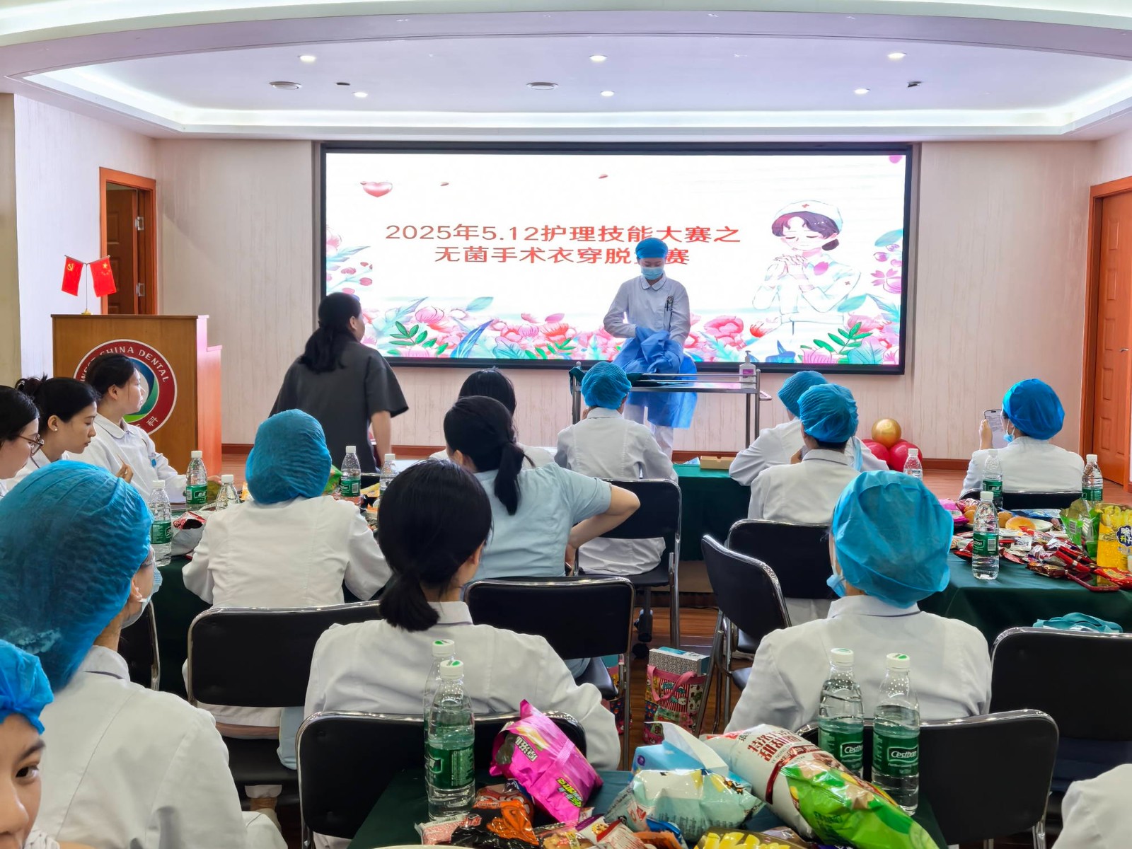 重慶華西牙科醫(yī)院組織全院護理人員開展了“精技礪能·守護健康”護理技能大賽。參賽護理人員憑借扎實的理論功底和嫻熟的實踐能力展開激烈角逐,在“無菌手術(shù)衣穿脫操作”“護理知識分組競答”兩大競賽項目中,來自口腔內(nèi)科、種植修復(fù)科的3名護理人員獲得了冠亞季軍。技能競賽結(jié)束后,全體護理人員在護士長的帶領(lǐng)下莊嚴(yán)宣讀南丁格爾誓言,鏗鏘有力的誓詞回蕩會場,彰顯了護理團隊堅守初心、守護生命的職業(yè)信念。