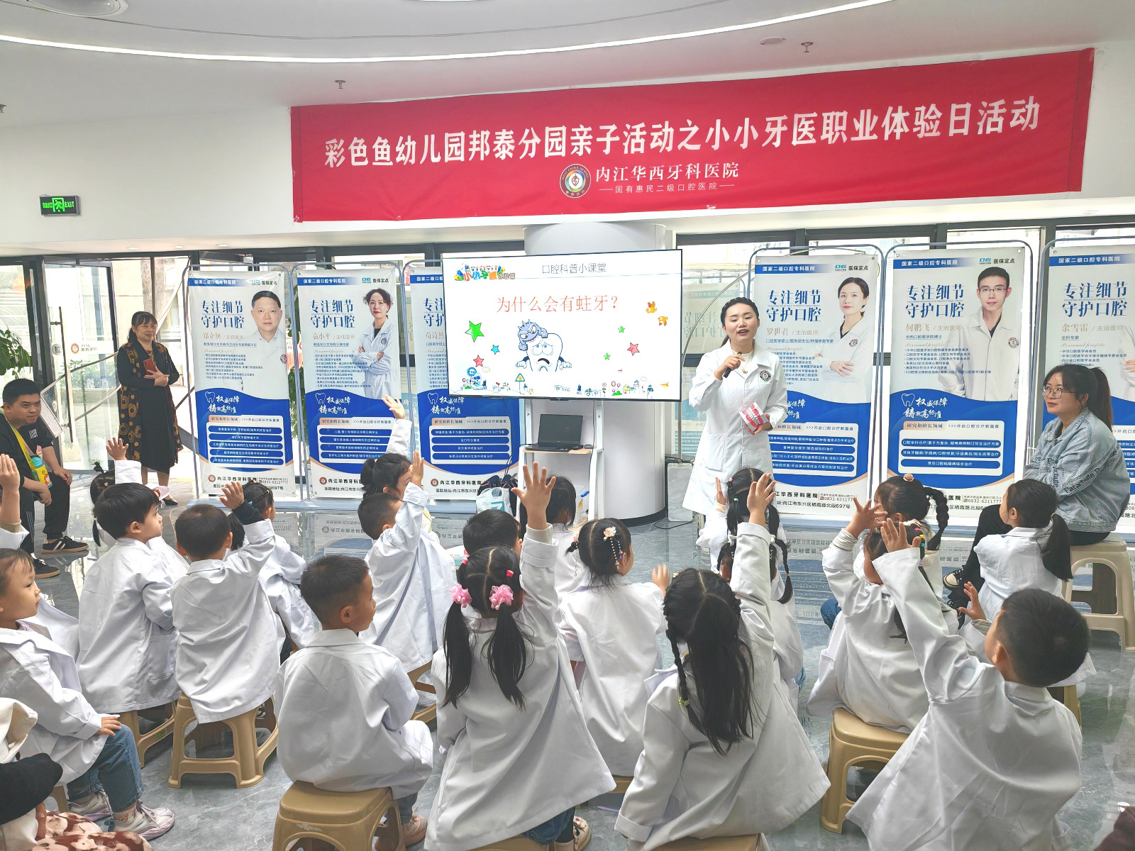 為深入推進“三減三健”健康口腔行動,降低兒童齲患率,10月28日,內(nèi)江華西牙科醫(yī)院走進幼兒園舉辦“小小牙醫(yī)職業(yè)體驗日”活動。旨在通過寓教于樂的方式,增強小朋友對口腔健康的認識,培養(yǎng)良好的口腔衛(wèi)生習慣。