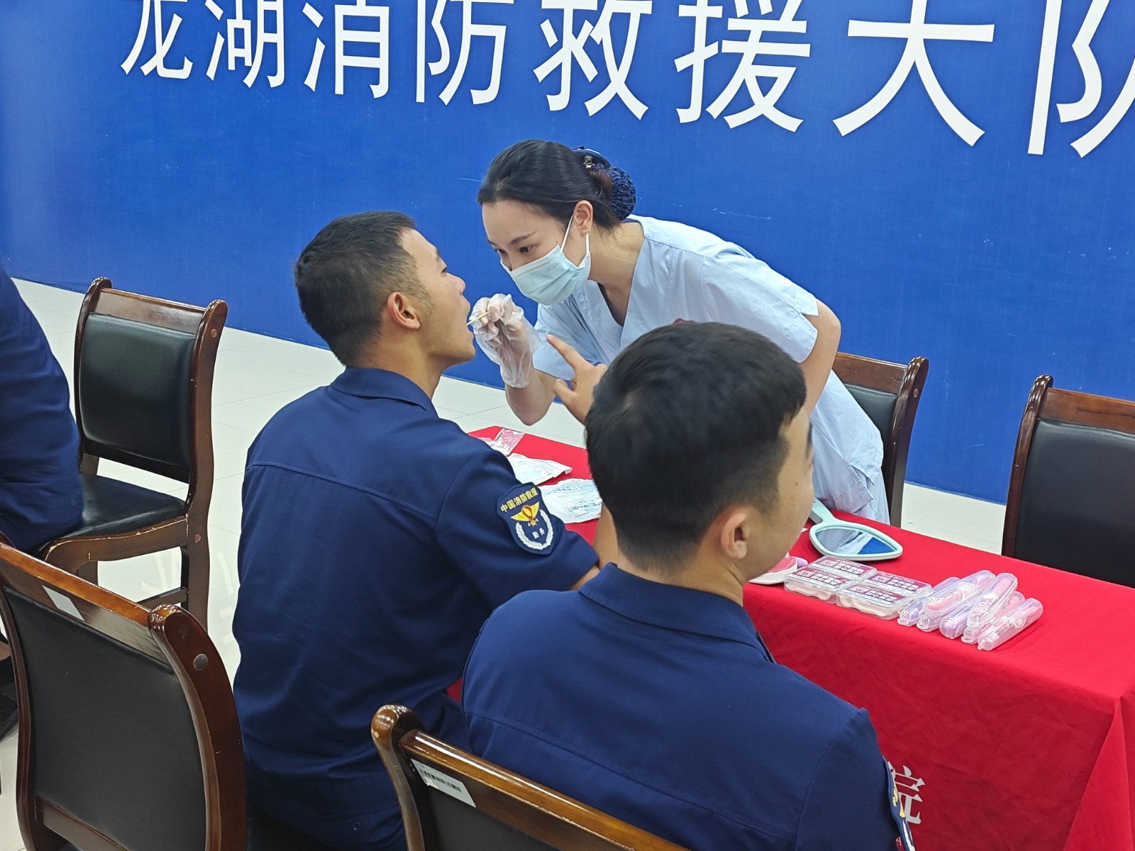 簽約儀式現(xiàn)場,汕頭口腔醫(yī)院專家團隊為消防官兵們進行了口腔科普宣教活動,口腔專家向消防官兵們展示了齲齒、牙周病、牙缺失等牙齒問題治療前后對比的真實案例,分析問題成因及防治方法,隨后向他們演示巴氏刷牙法的正確步驟和口腔日常護理要點,幫助他們養(yǎng)成良好的口腔衛(wèi)生習慣。活動現(xiàn)場,專家團隊還為消防官兵們進行一對一的口腔檢查和咨詢服務,為他們提供了從口腔衛(wèi)生、生活習慣、日常飲食等多方面的有針對性的防治建議。
