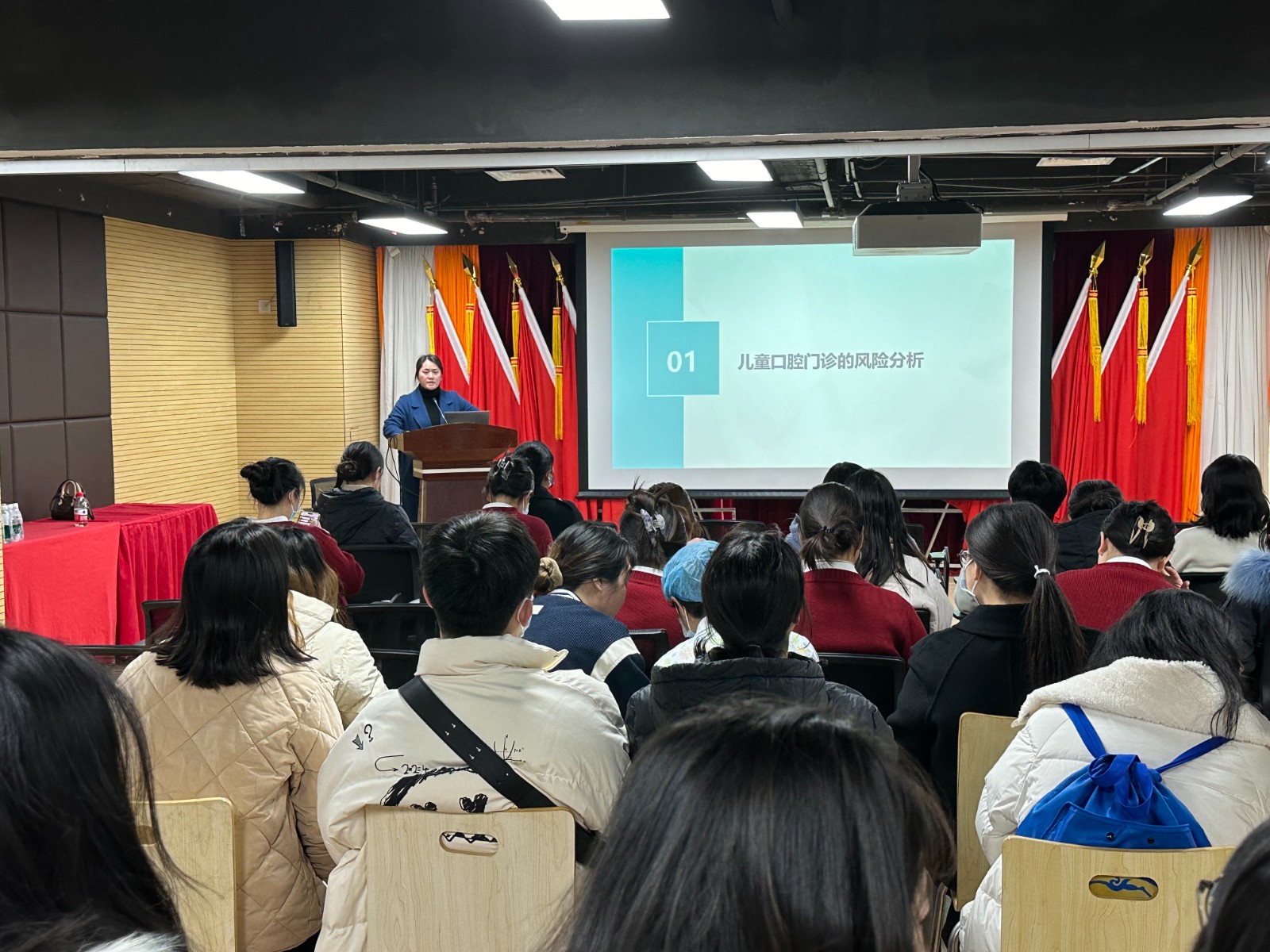 培訓(xùn)中,兒童口腔科護(hù)士長蒲丹針對兒童口腔門診中潛在的風(fēng)險(xiǎn)因素進(jìn)行了深入分析與講解,使護(hù)理人員深刻認(rèn)識到在日常工作中嚴(yán)格遵守規(guī)章制度、規(guī)范診療流程、提供高質(zhì)量護(hù)理服務(wù)的重要性。她圍繞改善科室環(huán)境、提升醫(yī)療質(zhì)量、優(yōu)化診療流程、加強(qiáng)急救能力培訓(xùn)、控制醫(yī)院感染以及緊跟行業(yè)發(fā)展趨勢等多個(gè)方面,提出了一系列針對性的風(fēng)險(xiǎn)管理建議,使護(hù)理人員時(shí)刻關(guān)注自身在門診安全管理方面的專業(yè)素養(yǎng)和應(yīng)對能力。