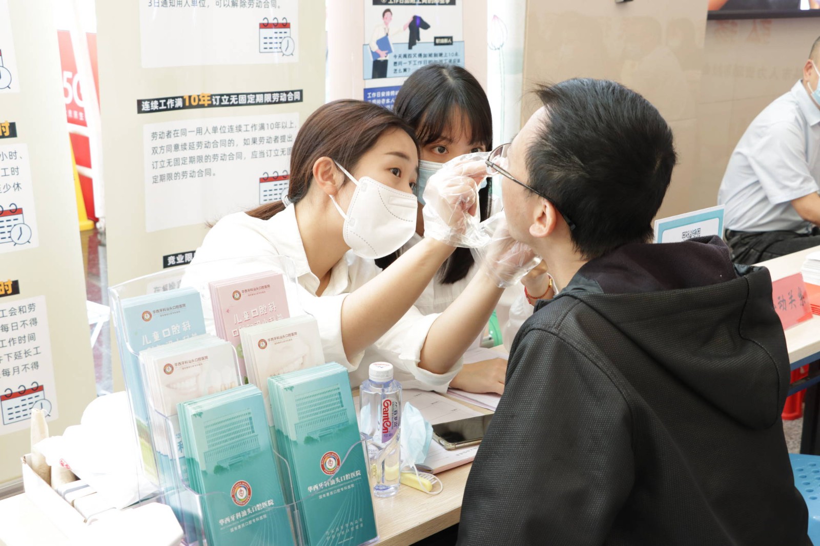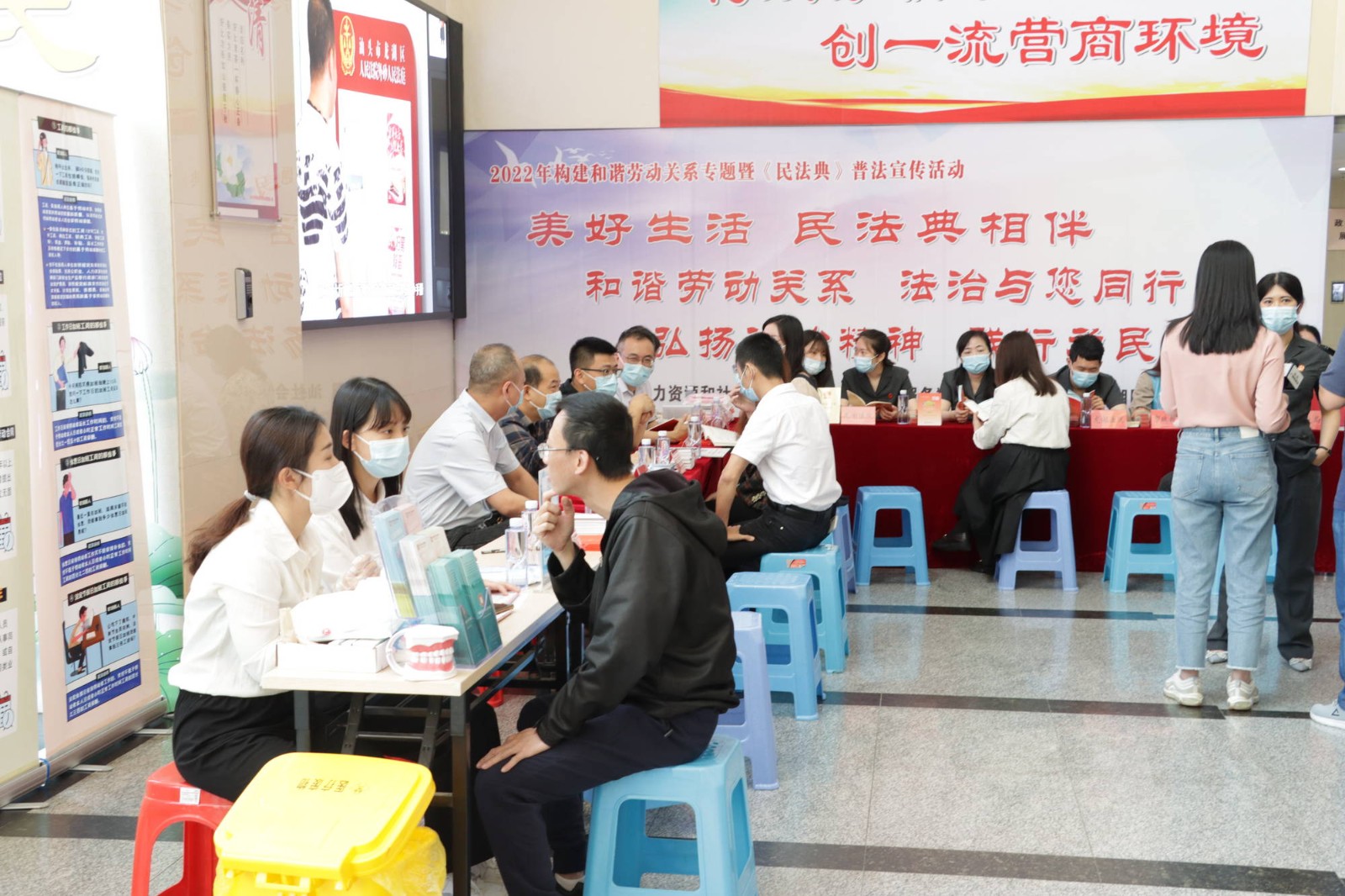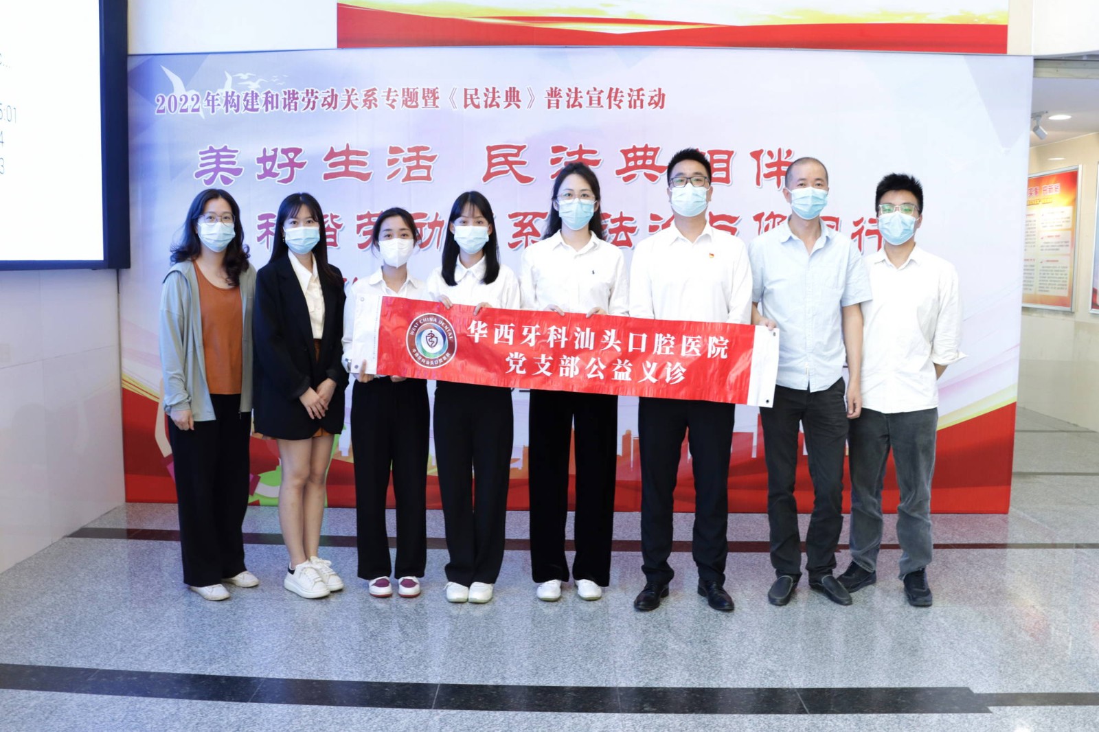 5月19日上午,由汕頭市人力資源和社會保障局、汕頭市政務服務數(shù)據(jù)管理局及汕頭市龍湖區(qū)人民法院聯(lián)合主辦,汕頭口腔醫(yī)院黨支部、汕頭市勞動人事爭議調(diào)解仲裁院及廣東國源嶺東律師事務所協(xié)辦的“2022年構建和諧勞動關系專題暨《民法典》普法宣傳活動”在汕頭市政務服務中心舉辦,汕頭口腔醫(yī)院黨支部帶隊到場開展口腔義診活動。