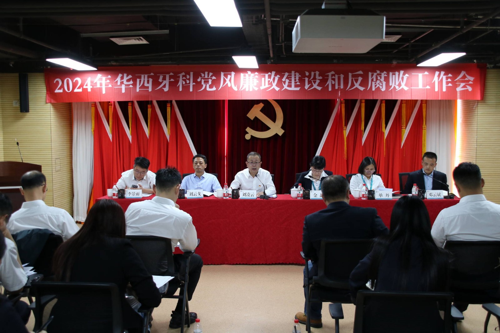 華西牙科領導班子成員出席會議,紀委委員,中層副職以上管理人員,所屬企業(yè)主要負責同志,黨員、群眾代表30余人參加會議。